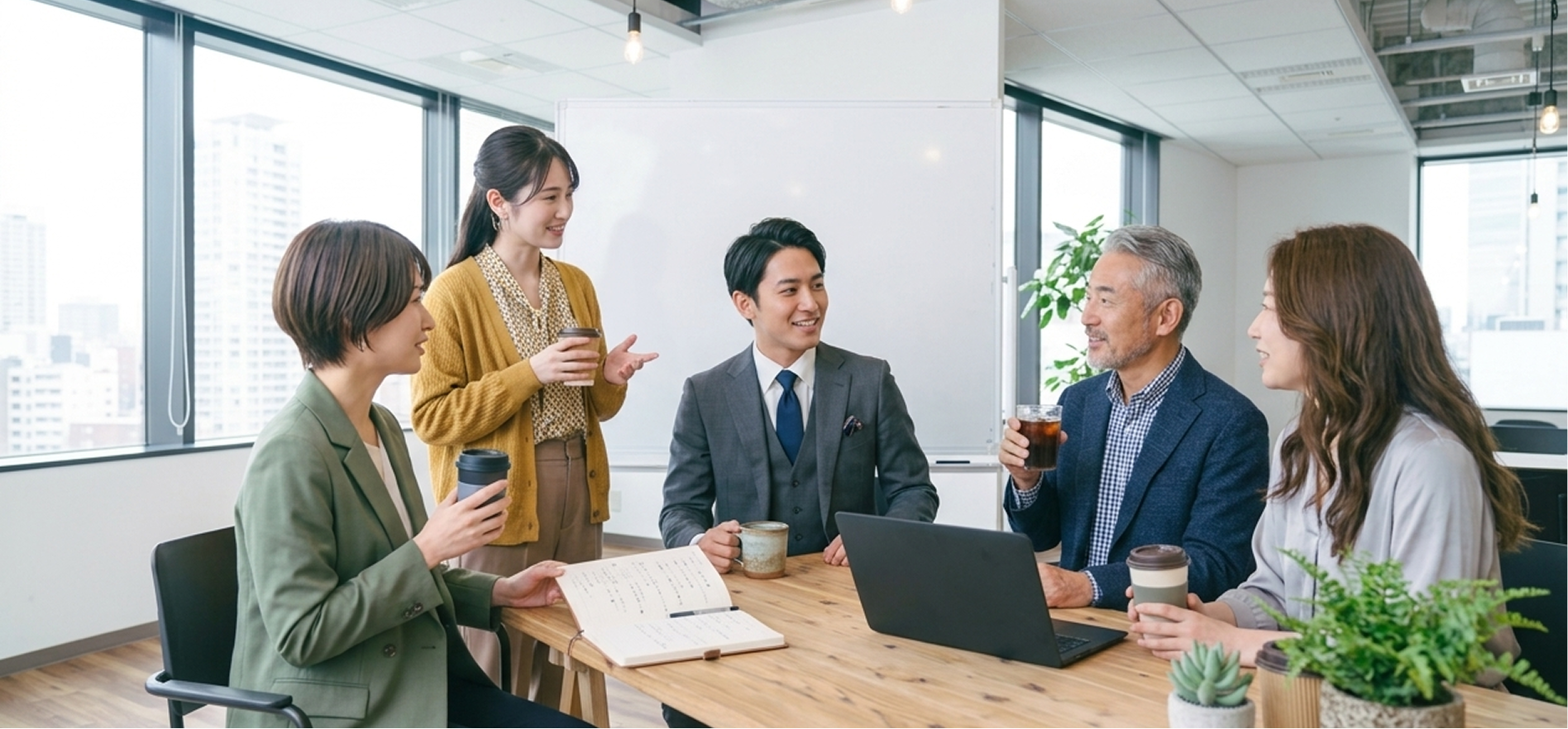 オフィスで打ち合わせをするビジネスチームの様子